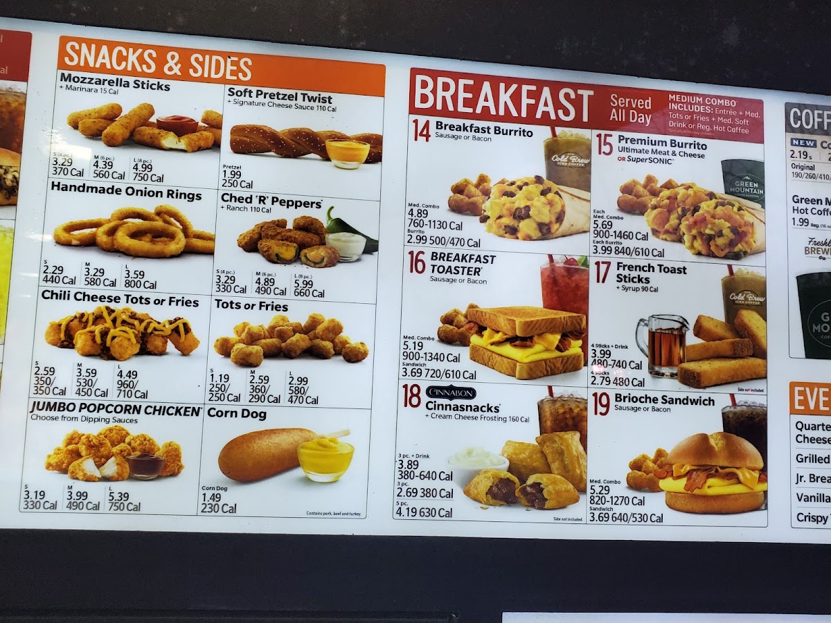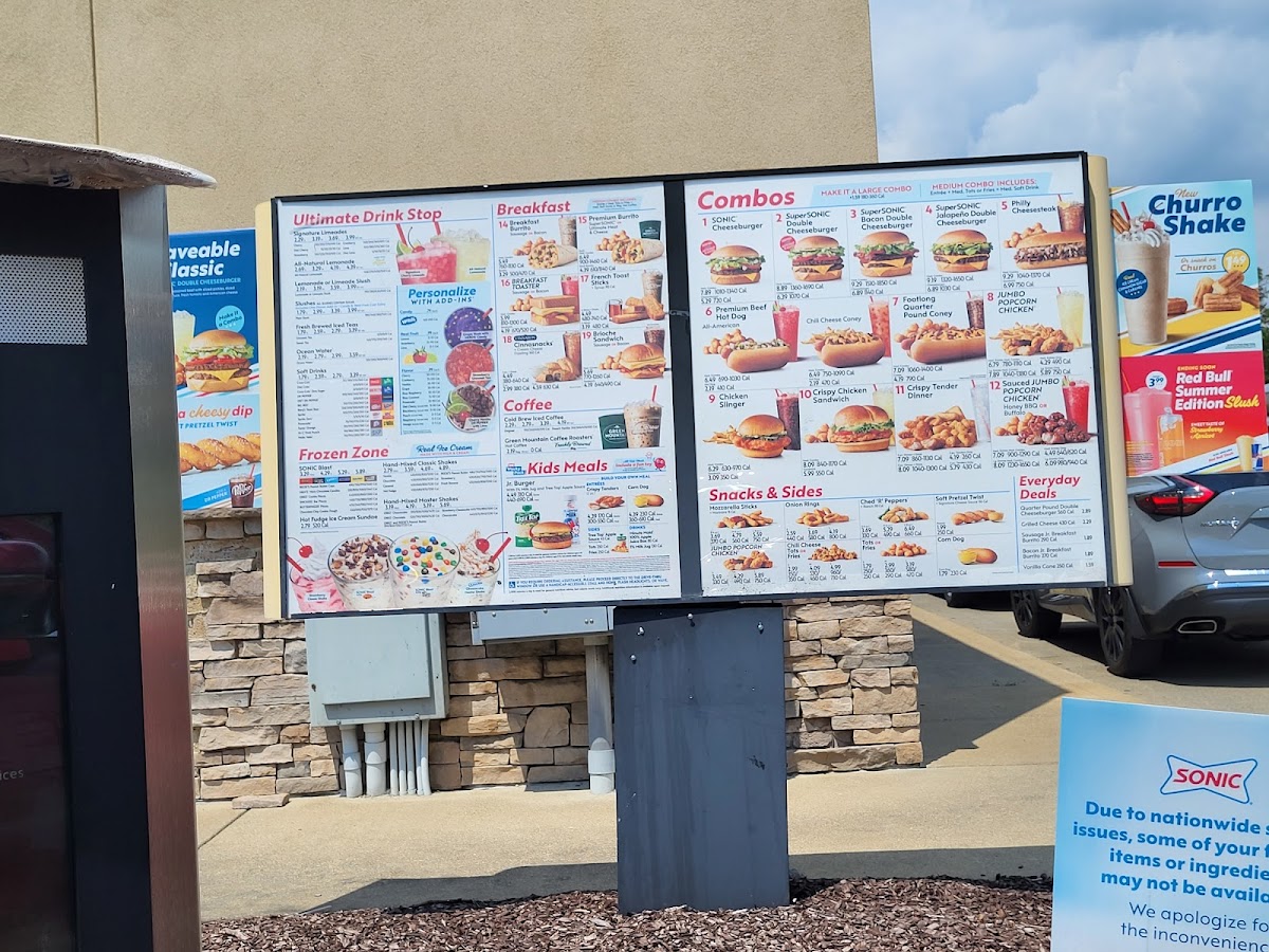 Sonic Drive-In stands out as a classic American fast-food destination, blending the charm of a drive-in with a diverse menu that satisfies all cravings. Located in Greensburg, PA, Sonic offers hearty breakfast bowls to kickstart your day, featuring flavors like the Regular Breakfast Bowl and their robust Hearty Chili Bowl served in a convenient cup. Burger lovers will appreciate the SONIC® Cheeseburger, crafted with 100% pure beef, melty American cheese, fresh veggies, and signature pickles, or step it up with the SuperSONIC® Double Cheeseburger for a satisfying double-patty delight.